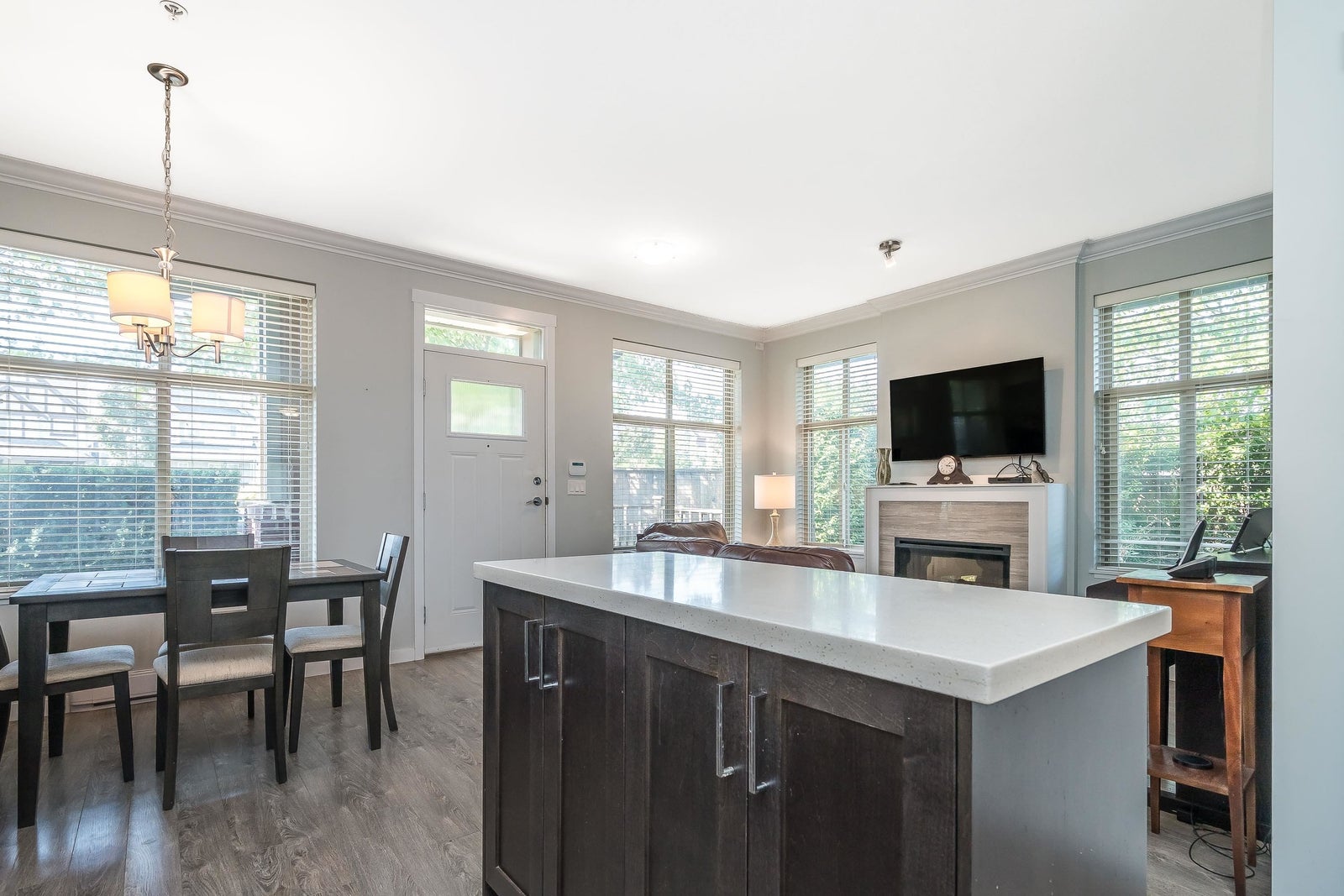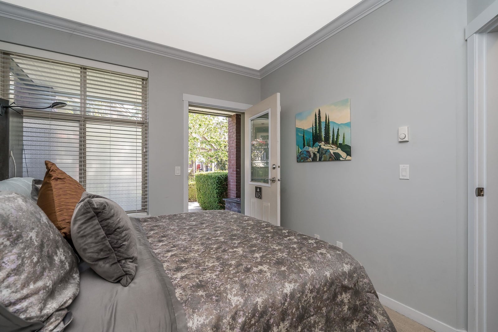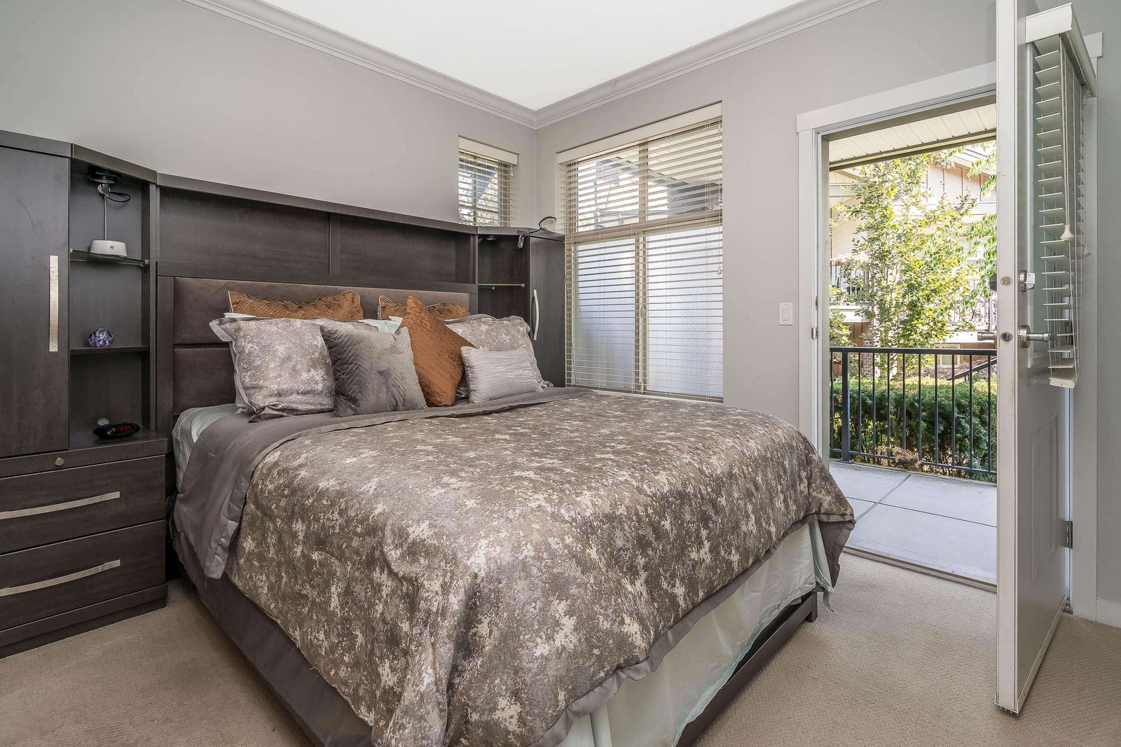 Beautiful walk out ground level almost 800sf corner/end unit townhouse in a great area of Clayton. NO STAIRS! Rare, well taken care of home. Open concept home w/a large kitchen w/granite ctops, s/s appls, lots of cabinets & cspace, large island, then your dng rm & lvg rm w/electric fp. Windows on 3 sides of this home gives lots of natural sunlight. Laundry rm w/sink & storage. Primary bdrm as a walk thru closet & 3 piece ensuite (oversized shower), another large bdrm & 4 piece bthrm. Primary has access to the fully covered bkyard. Currently lots of street parking right out front. Your front door is behind a fenced yard! Wheelchair accessible. 2 underbuilding parking spots, 1 storage locker. Will be walkable to the new skytrain. Low strata fee! Under $300/month.