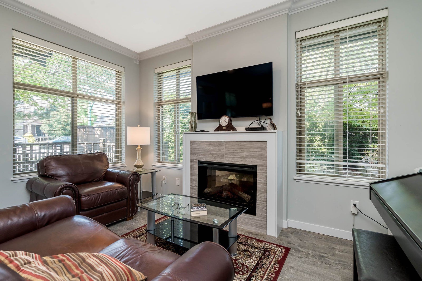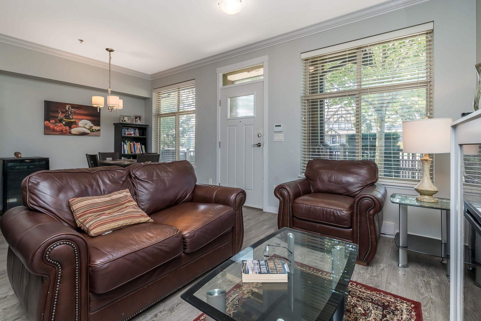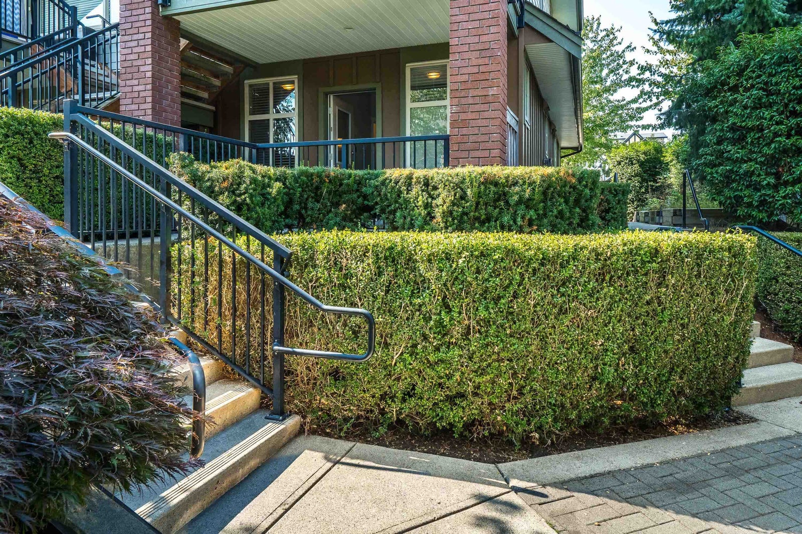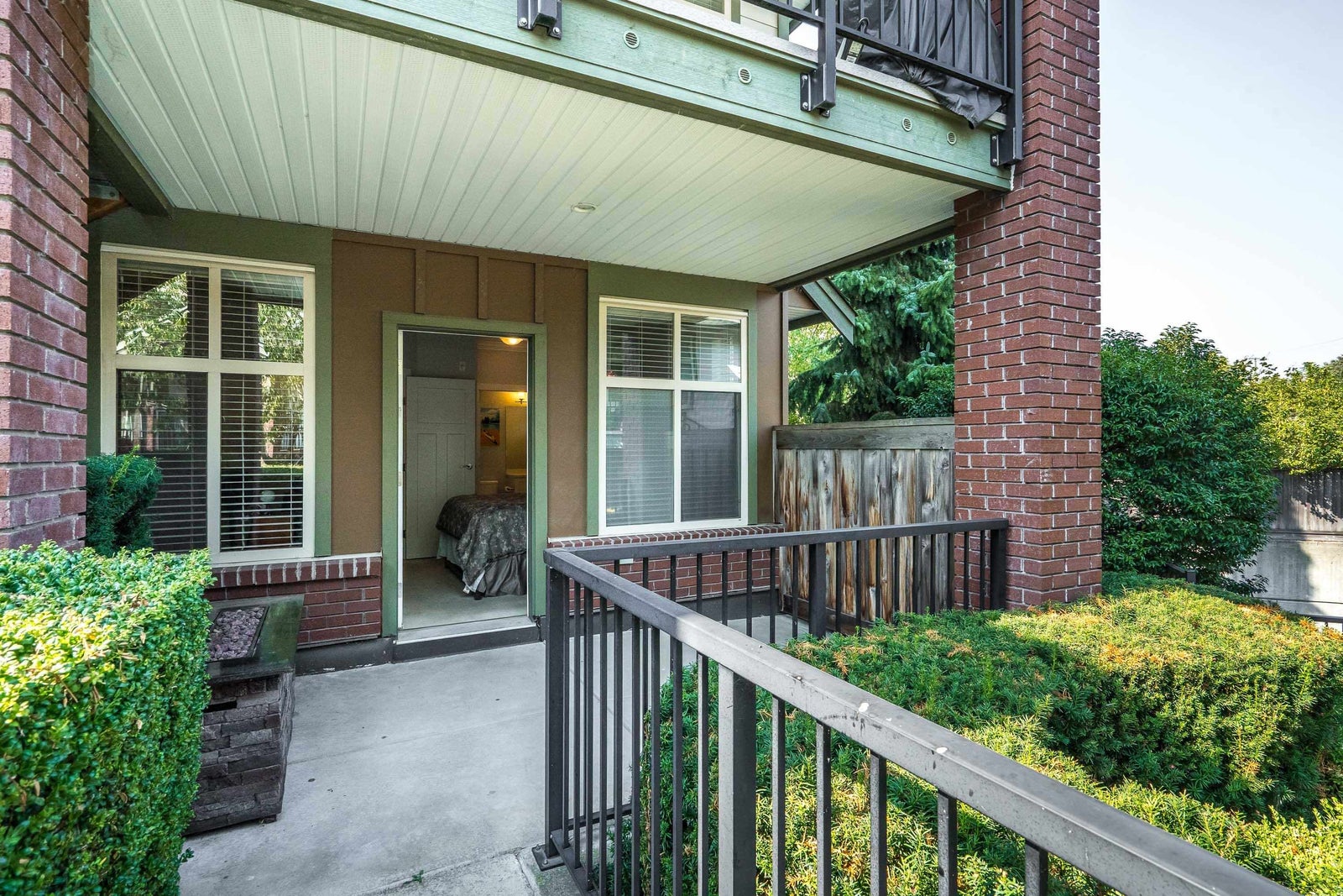 Beautiful walk out ground level almost 800sf corner/end unit townhouse in a great area of Clayton. NO STAIRS! Rare, well taken care of home. Open concept home w/a large kitchen w/granite ctops, s/s appls, lots of cabinets & cspace, large island, then your dng rm & lvg rm w/electric fp. Windows on 3 sides of this home gives lots of natural sunlight. Laundry rm w/sink & storage. Primary bdrm as a walk thru closet & 3 piece ensuite (oversized shower), another large bdrm & 4 piece bthrm. Primary has access to the fully covered bkyard. Currently lots of street parking right out front. Your front door is behind a fenced yard! Wheelchair accessible. 2 underbuilding parking spots, 1 storage locker. Will be walkable to the new skytrain. Low strata fee! Under $300/month.