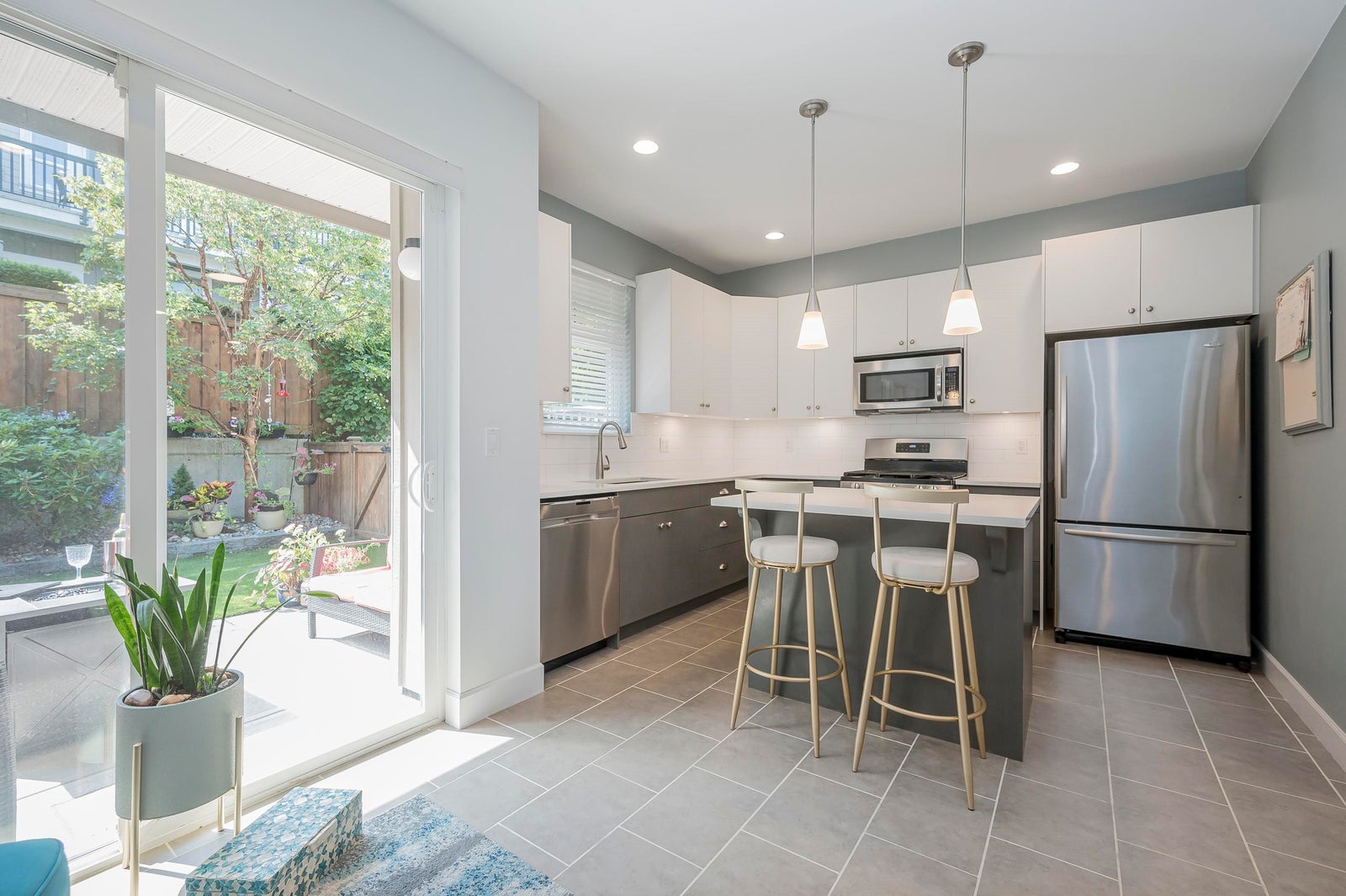 Welcome home! This 3 bedroom 3 bathroom townhouse combines modern updates with a functional layout. The kitchen has been renovated with new finishes, s/s appliances, large center island - perfect for entertaining. Step outside to your own zero maintenance walkout backyard w/turf - ideal for relaxing or hosting. The open concept main floor features a bright living and dining room and a convenient powder room. Upstairs you'll find 3 spacious bedrooms, 2 full bathrooms and your laundry. The Garage offers flexibility w/room for parking, plus storage or a hobby space. Located in the catchment for Sunnyside Elementary and the highly regarded Grandview Heights Secondary.