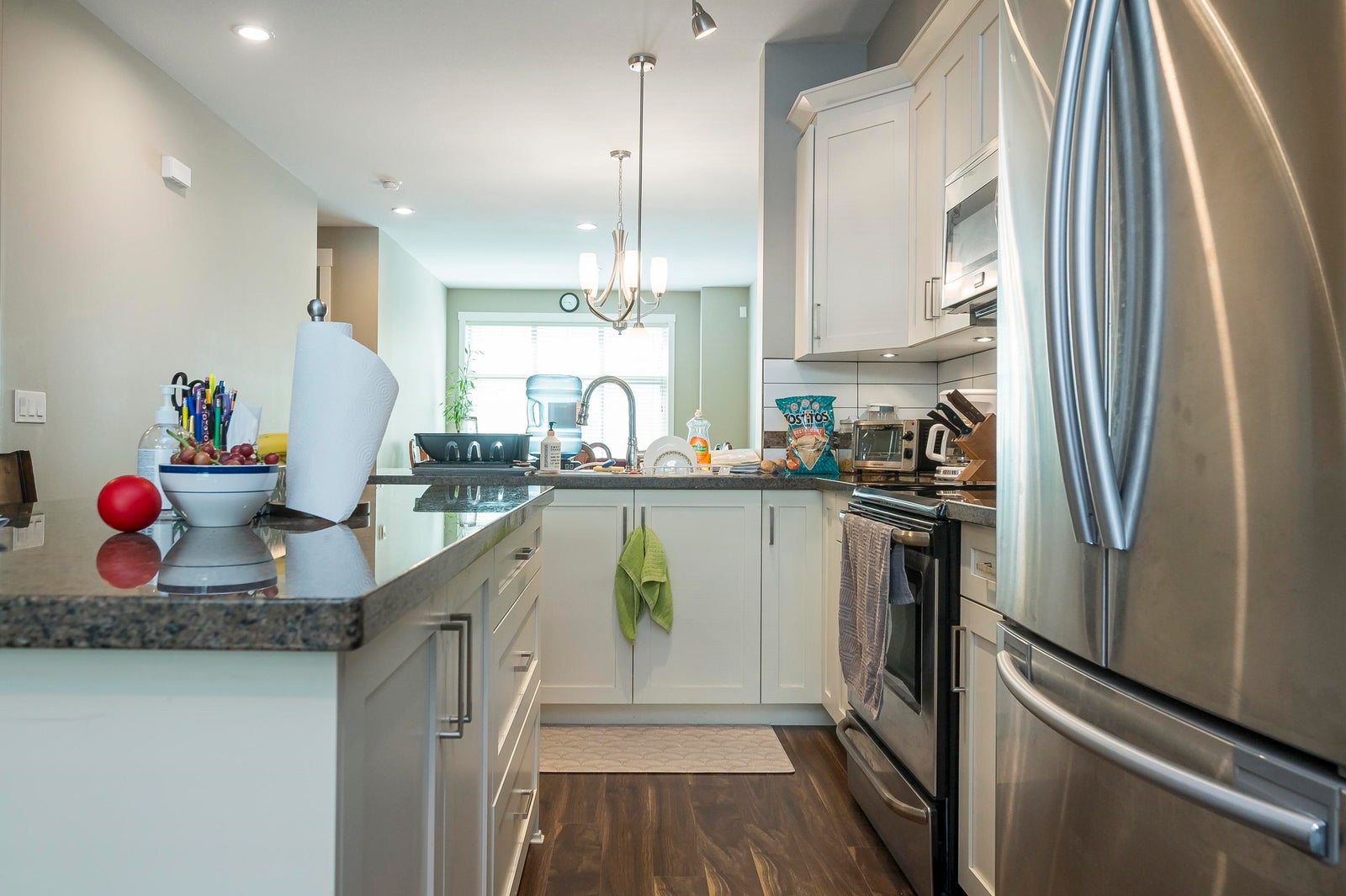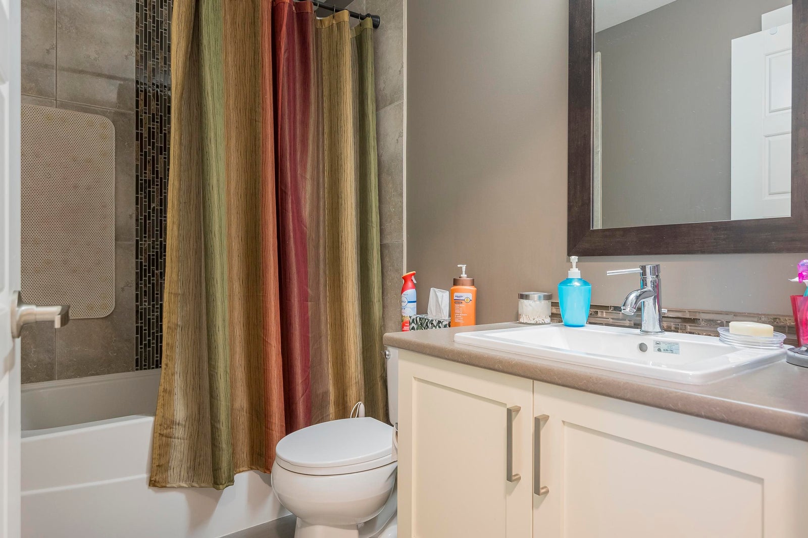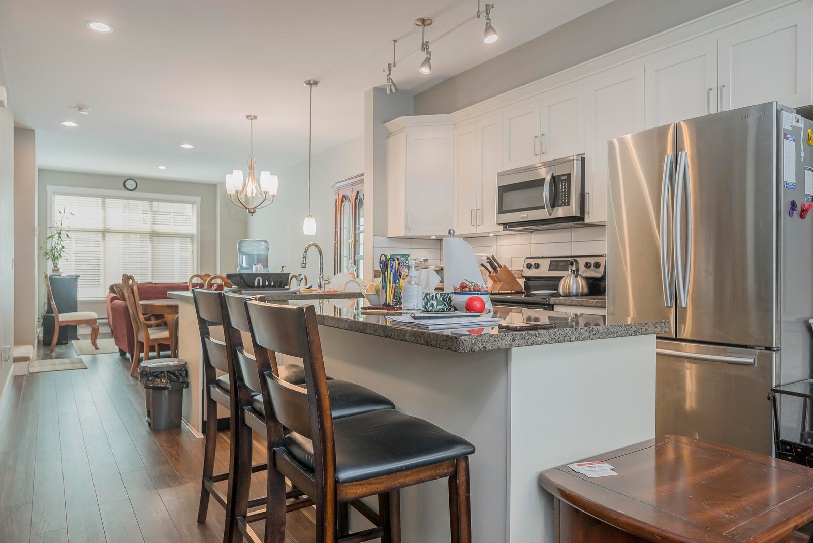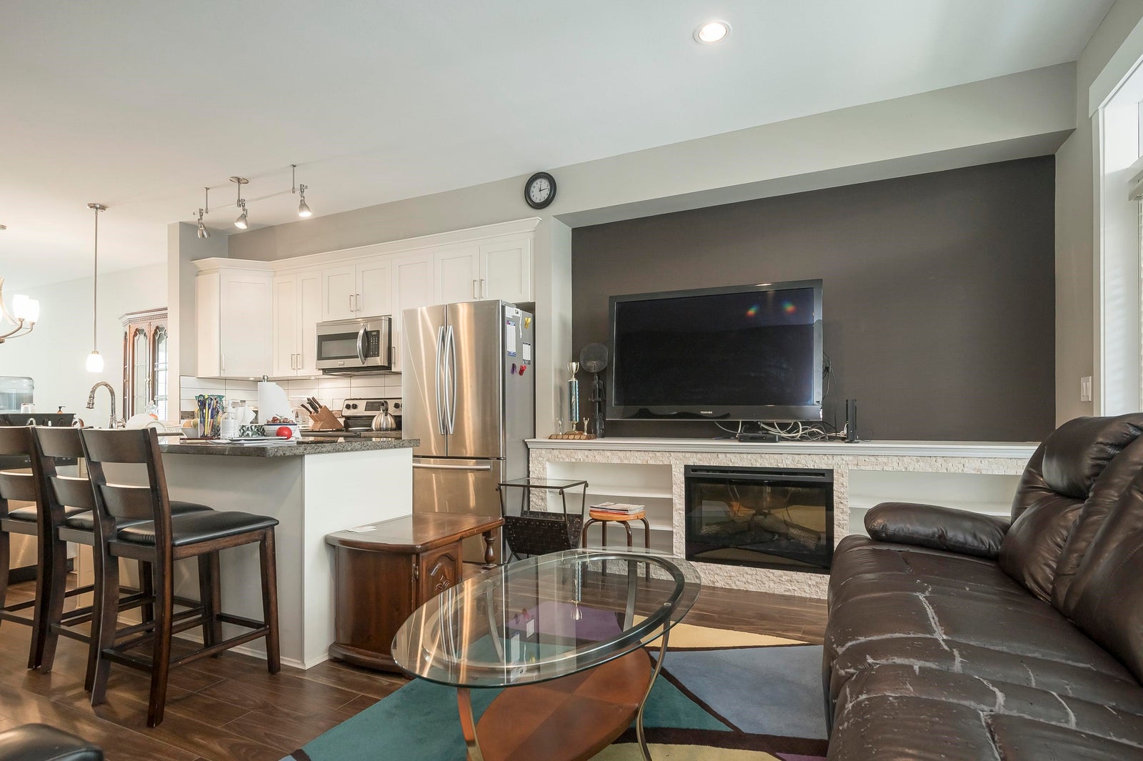 Uptown complex townhouse, 3 bedrooms upstairs, 2 bthrms, laundry, the main floor features your great room concept w/lvg rm, dng rm, kitchen, then family room w/access to your balcony deck. Plus a powder room! Family room boosts bi custom shelving/tile nook & electric f/p. Kitchen has white cabinets, s/s appliances and a big breakfast bar. Then the basement has a large foyer, garage w/room w/access to your fenced backyard.