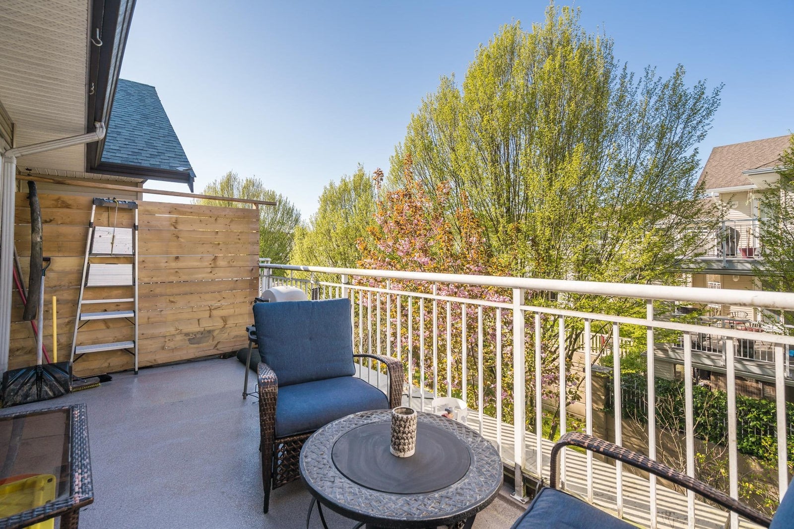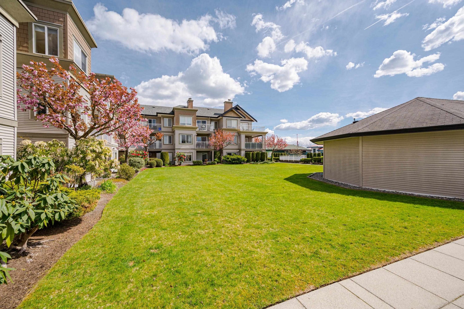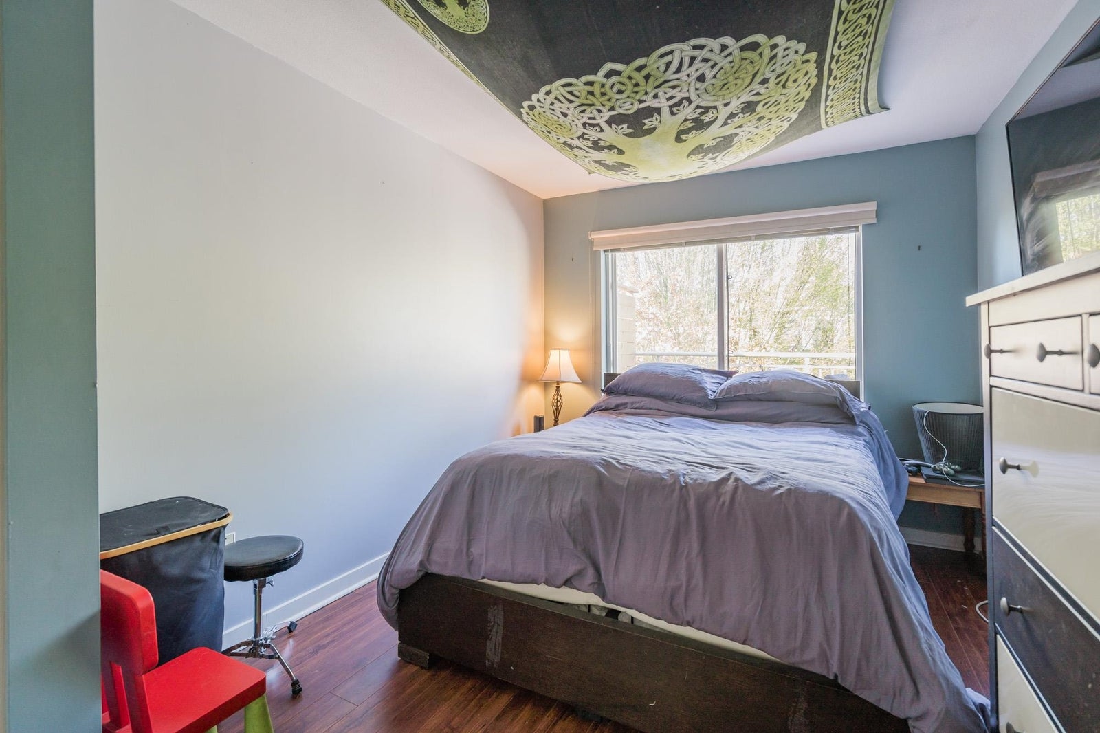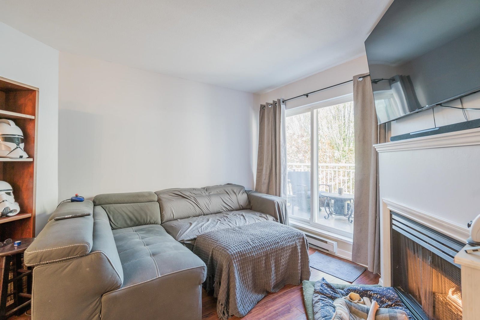 Penthouse beauty! 716sf 2 bdrm 1 bthrm style north facing home. 2 skylights. Great room concept with your kitchen overlooking your dng and lvg rm. Kitchen has a breakfast bar, lots of cabinets and granite countertops. Livingroom has a gas f/p and access to your private deck. Primary bedroom has a wi closet + another closet, cheater ensuite w/has an oversized shower w/tile surround & granite c/tops. The den has sliders to your balcony. Laundry area is huge and open w/cabinets & counterspace. Bright home on the quiet side of the building. 2 parking spots, 1 storage locker. Close to transit, shopping, restaurants, Willowbrook and more.