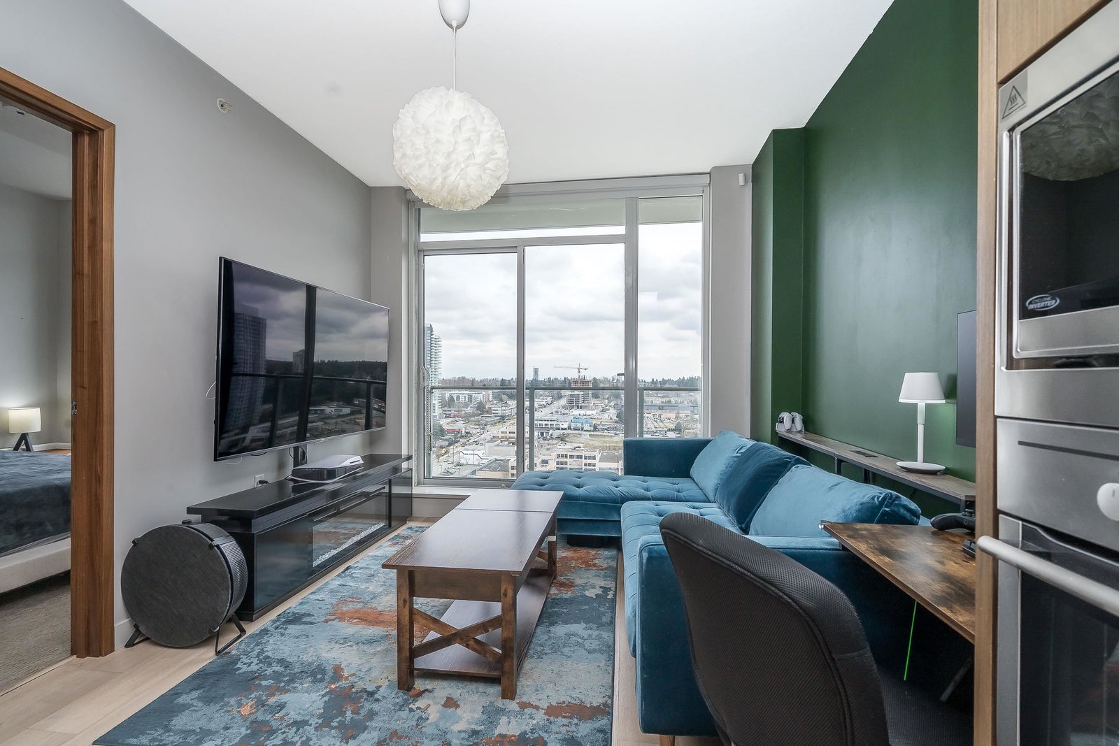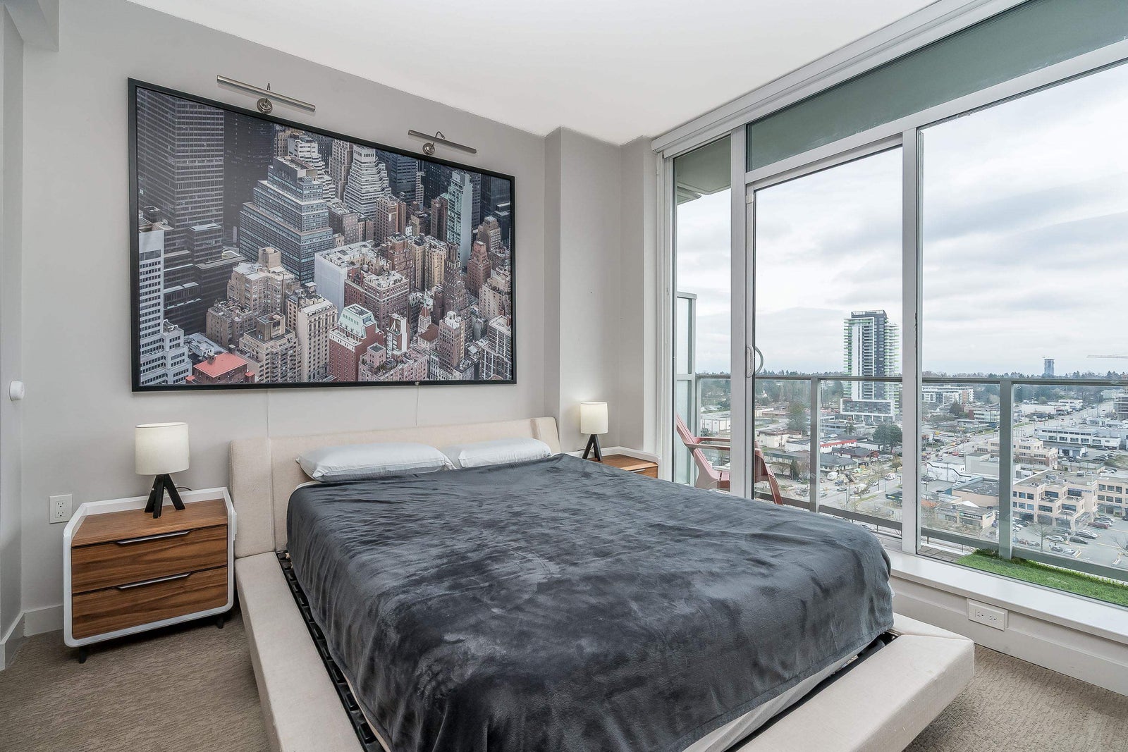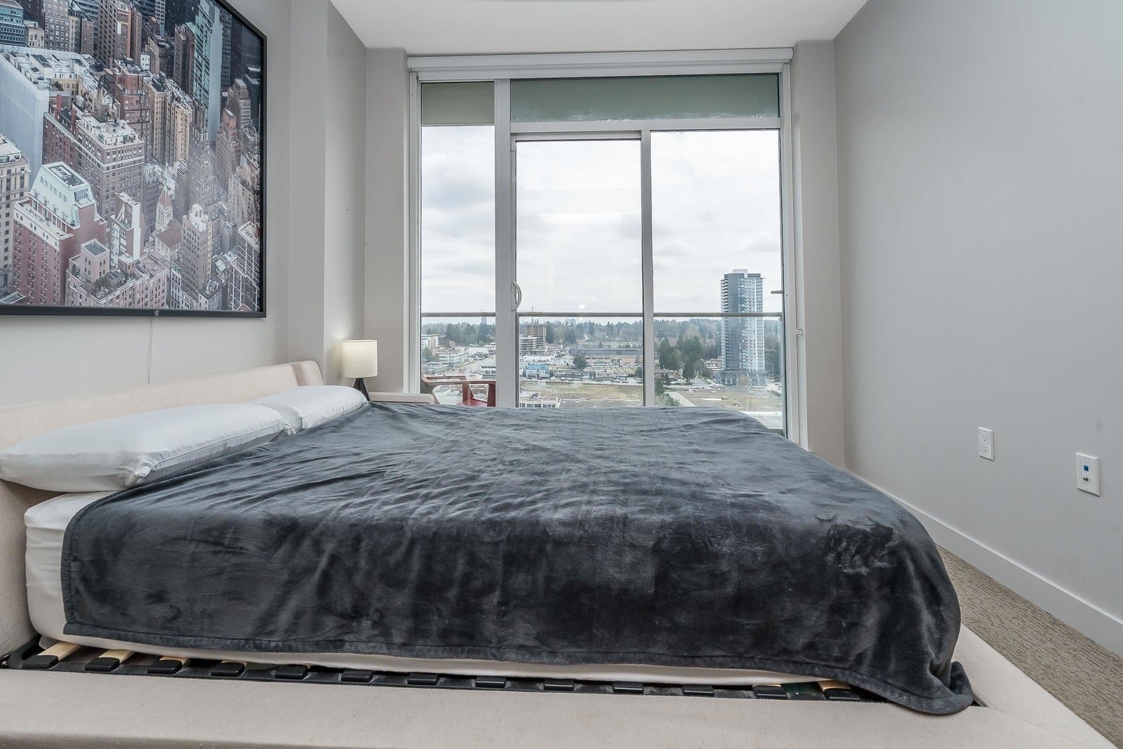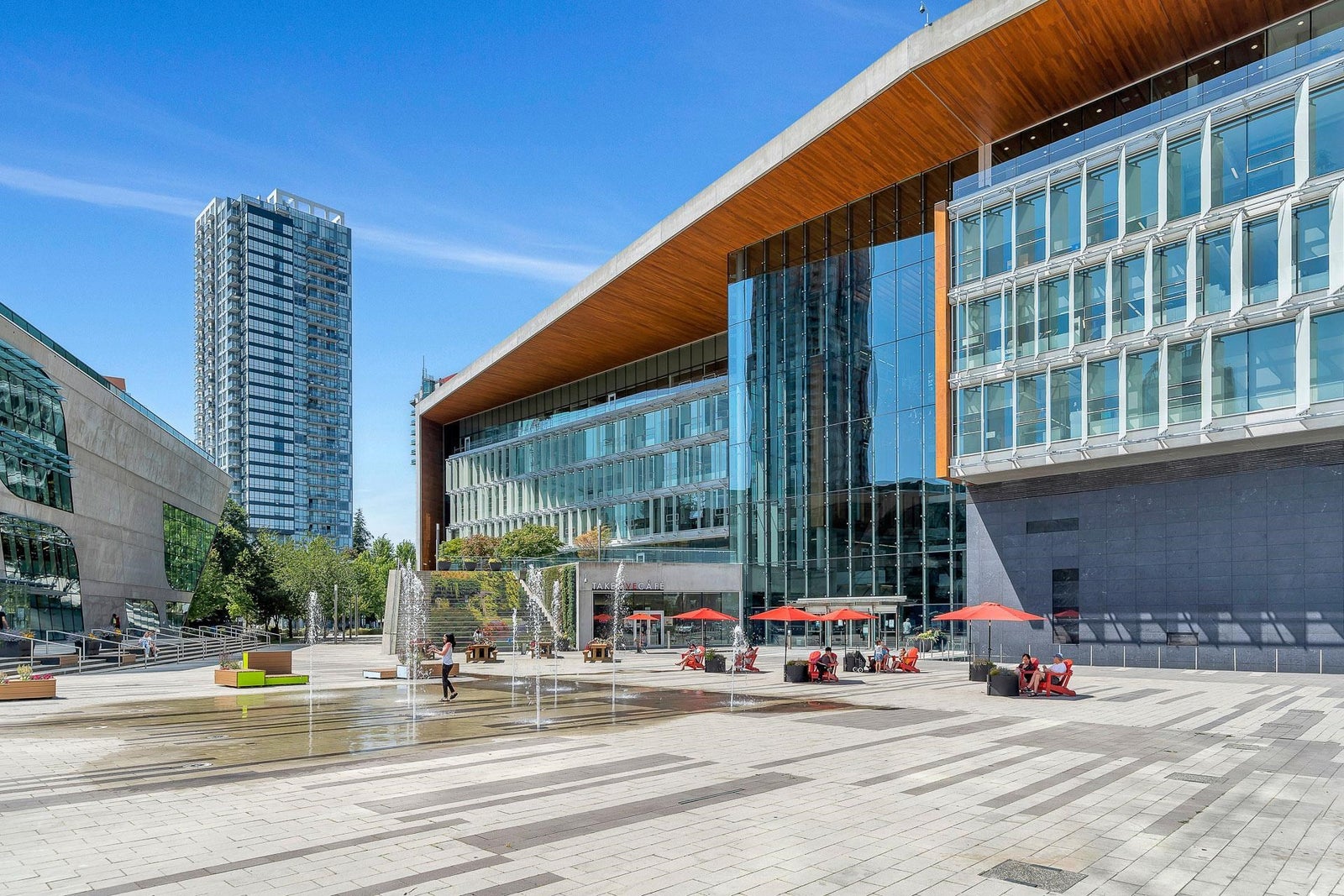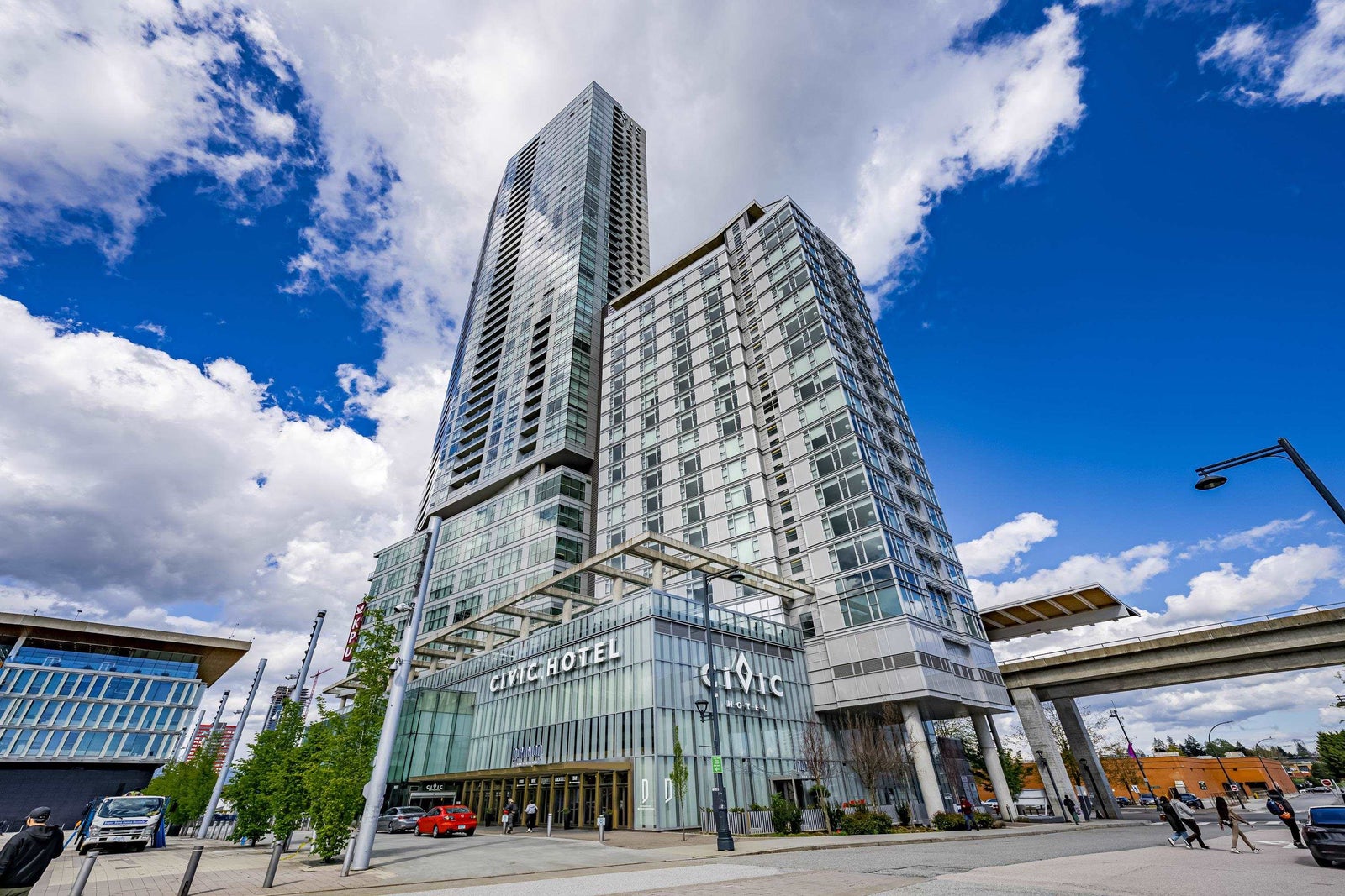 3 Civic Plaza in a growing area of Surrey City Centre - luxury homes and a world class Hotel. Steps from City Hall, library, SFU, KPU, Central City Shopping, T&T, Walmart and more. Close to Highway 1. Great layout w/wonderful views! Insuite laundry, 1 parking spot, 1 storage locker. Open layout w/your kitchen w/spacious island, lots of cabinets and quartz countertops. S/S BI stove, bi oven, bi microwave, fridge, stove. Remote blinds. Primary bedroom w/ample closet space and 4 piece ensuite - soaker tub and rain shower stall. Radiant heating and cooling! Private covered balcony. Tallest tower around! Quick possession available.