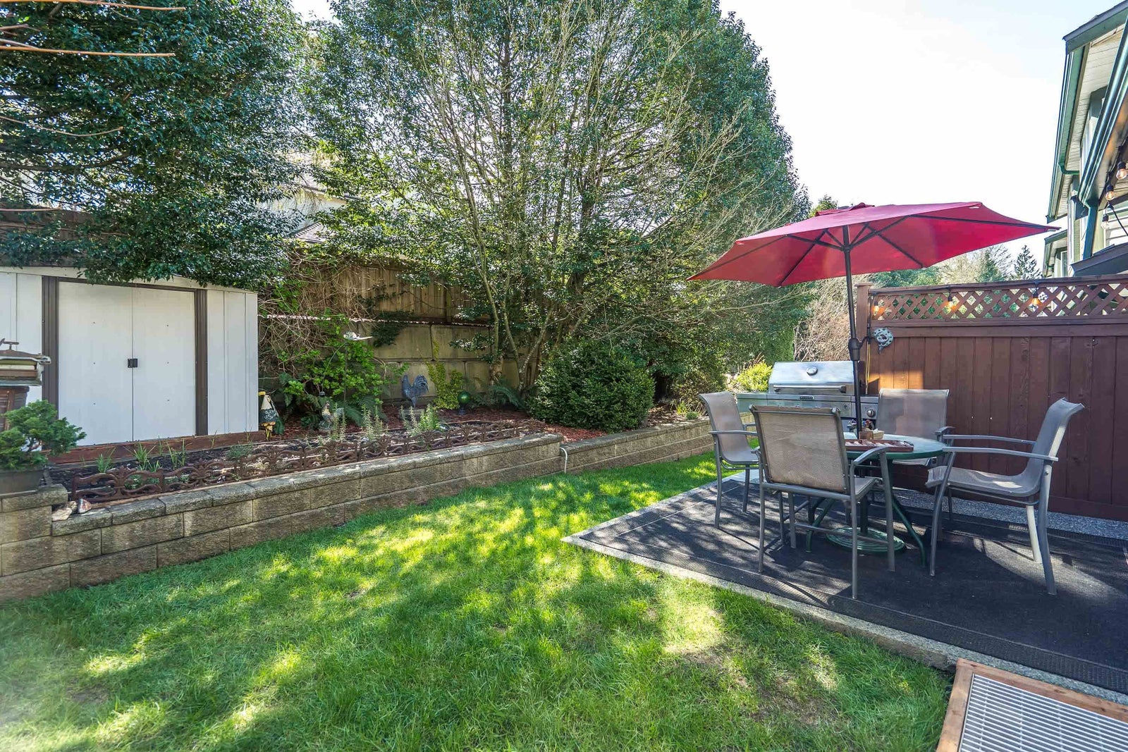 Emerald Estates outstanding complex. Great layout features 2 bedrooms + 2 bthrm upstairs, primary is huge w/an extra sitting area, big walk in closet and spa inspired ensuite. Your main floor has a family room, large updated kitchen w/ss appliances, lvg rm w/gas fp and dng rm leading to your private large walk out backyard w/a powered shed. The basement features 2 more bedrooms, full bthrm, laundry room and storage. Single car garage w/apron parking for 2. Close to the freeway and golden ears bridge. Shopping, transit, restaurants, nature trails are abundant. NO poly-B in the home! Well maintained home, turn key ready.